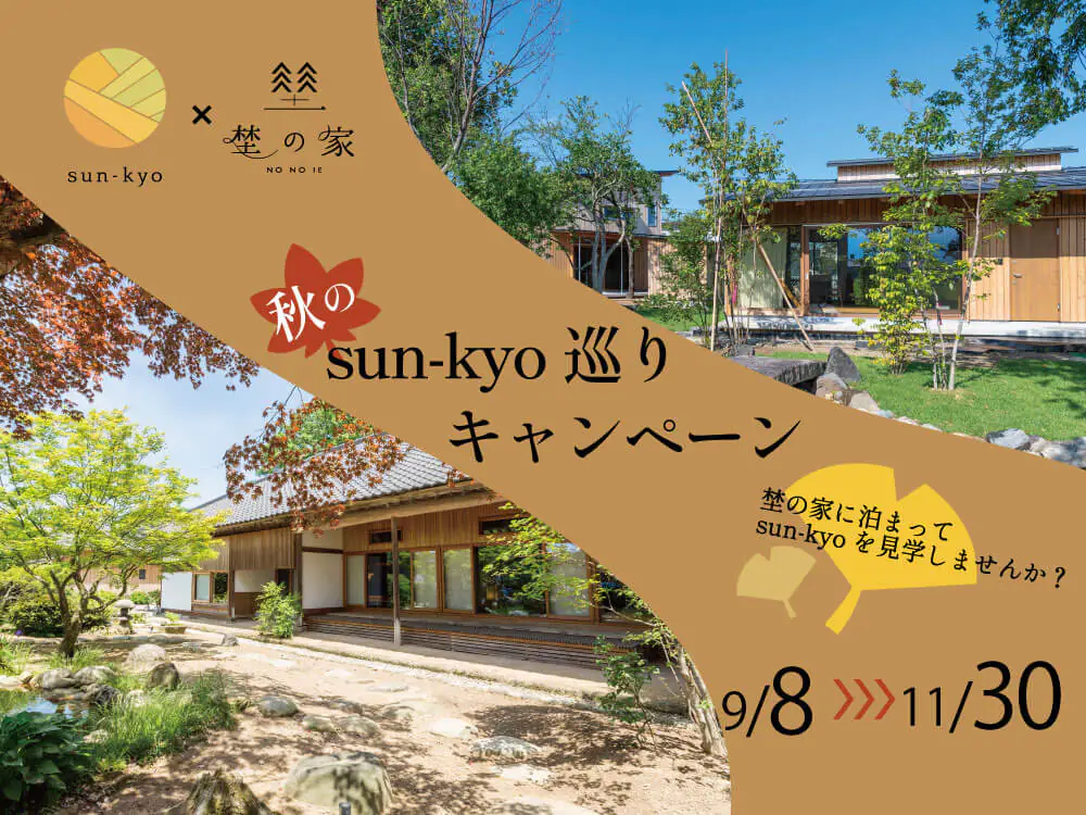 散居とは、広大な耕地の中に民家が散らばって点在する集落形態のことです。そこで暮らす人々は家の周りの農地を耕し、屋敷林の樹木などを生活に活用しています。sun-kyoではこの伝統的な自給自足の生活、自然と共生する暮らしのエッセンスを取り入れています。