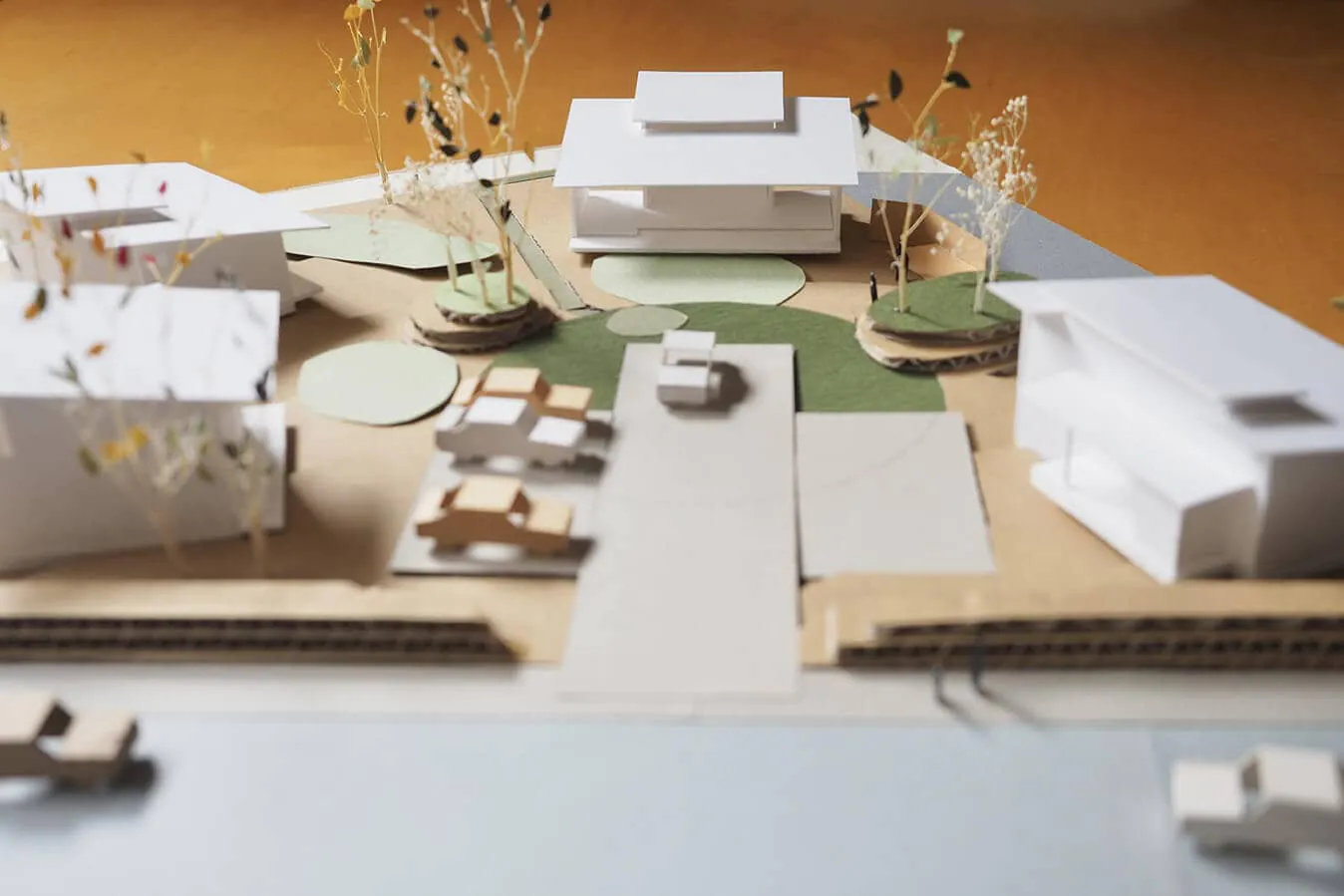 私の職業は建築の設計で、その多くは住宅です。で、そのほとんどが「一つの敷地に一軒の家」という仕事なので、今回のようなチャンスは滅多にありません。だって、屋敷林という一まとまりの環境の中に、小さいとはいえ住まいの群を設計しようというのですから。